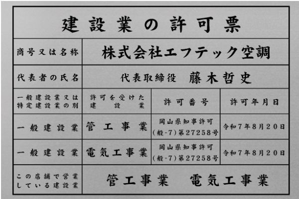 | 2025 | 8月 岡山県建設業(管工事業、電気工事業)の許可取得 |